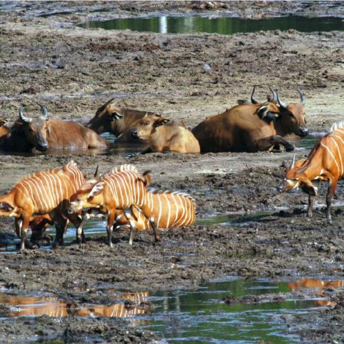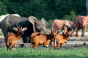 I regnskoven er det den smukke orange og hvidstribede bongoantilope som er målet for de fleste jægeres anstrengelser. Men også de små skovelefanter, sitatungaer, skovbøfler, giant forest hogs og et væld af eksotiske duikers, som kun kan jages her, tiltrækker berettiget opmærksomhed fra internationale storvildtjægere.