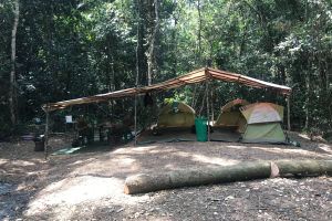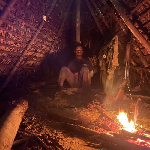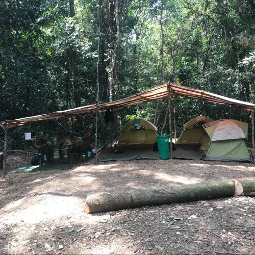 Efter en god nats søvn og morgenmad fortsætter rejsen til base camp i regnskoven. Køreturen tager cirka 6 timer afhængigt af trafikale forhold. Ved ankomst ompakkes bagagen, og jagttøjet iføres. Herfra venter en cirka 2 timers vandring til selve jagtcampen (telt). Så snart base camp forlades, begynder jagten.