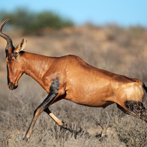 Videnskabeligt navn: Alcelaphus b caama Underarter: Er selv en underart af Alcelaphus buselaphus Udbredelse: Sydafrika, Namibia, Botswana og Angola Levested: Åben bush og græssletter. Beskrivelse: Mellemstor antilope, der vejer ca. 170 kg og måler 120 - 140 cm over skuldrene. Skindfarven er rødbrun. Hornene der er sorte er kraftige og starter med at antage lyrefascon....