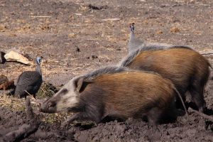 Videnskabeligt navn: Potamochoerus porcus Underarter: Der anerkendes op til 18 underarter, der alle her beskrives under et. Udbredelse: Hele Afrika syd for Sahara med undtagelse af ørken områder i Namibia. Levested: Tæt bush ofte langs floder. Holder ofte til i nærheden af marker, hvor de forvolder store skader. Beskrivelse: Mindre vildsvinelignende dyr, der...