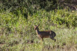 Videnskabeligt navn: Raphicerus campestris Underarter: Der er stor uenighed omkring antallet af underarter. Men der anerkendes så vidt vides fra 1 op til 8 underarter. Udbredelse: Sydafrika, Namibia, Angola, Botswana, Zimbabwe, Zambia, Mozambique, Kenya og Tanzania. Levested: Åben bush og højt græs på græssletter. Beskrivelse: Lille antilope med en...