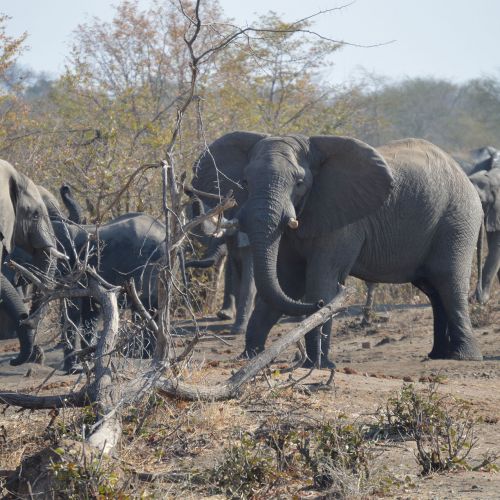Dagen efter om morgen efter et dejligt morgen måltid blev vi kørt ud til elefanten for at se skinning og partering, trackere og medarbejdere havde forinden ryddet vejen ind så traktor, vogn og div. Biler kunne komme ind til elefanten, henad eftermiddagen kom kødet og hovedet hjem til skinner pladsen, hovedet blev gravet ned i et stort hul i jorden for at tænderne kunne blive frigjort, kødet blev fordelt til Plejehjem, Hospital, samt blev der fremstillet biltong af resten, de næste 3 dage var vi bl.a en dag i Hwange Nationalpark. De næste dage kørte vi rundt på jagtområdet og spottede de forskellige dyr, vi så bl.a Vilde hunde som var en stor oplevelse.