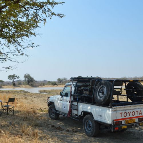 4 timers kørsel fra Bulawayo. Campen består af to murede hytter med stråtag, gode senge og med eget toilet og bad. Der kan bo to 2 personer i hver. Der er også et fælles stråtækt spiseområde og en fin lille bålplads med kig til Limpopo floden og Sydafrika lige på den anden side af floden. Alt i alt en hyggelig big-game Camp...