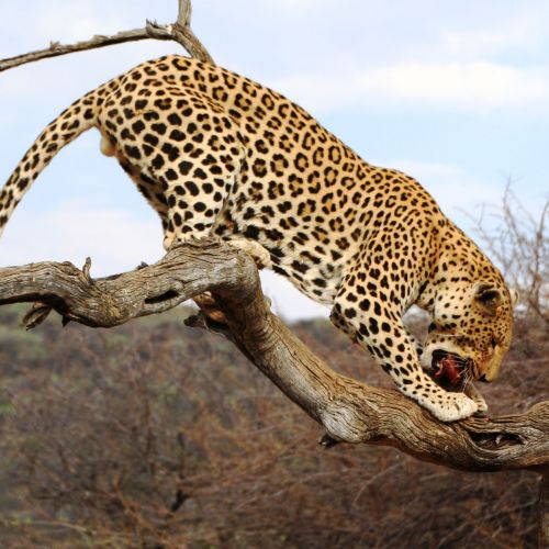 Videnskabeligt navn: Panthera pardus Underarter: Ingen Udbredelse: Hele Afrika syd for Sahara. Levested: Alle typer af terræn (selv udkanten af boligområder). Beskrivelse: Mellemstort dyr af kattefamilien med kompakt krop og kraftige ben. Leoparden kan opnå en vægt på 60 - 90 kg og en højde på ca. 70 cm. Skindet er gyldent med sorte ringe. Leoparden...