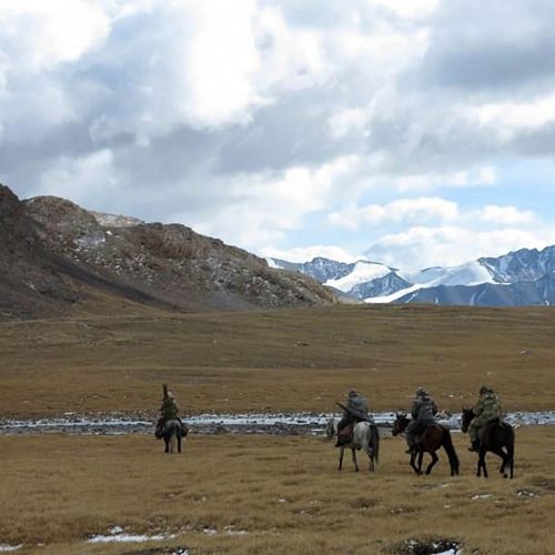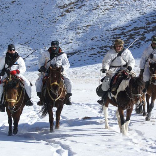 Lidt over kl. 4:00 om morgenen på anden jagtdag sad min far, jeg, PH’en, 2 spottere og tolken på hver vores hest i bælgmørke og i et par graders frost og snevejr. Selvom vi på forhånd var klar over at det kunne være udfordrende at ride i bjergene, skulle jeg alligevel anstrenge mig for at holde nerverne i ro når vi krydsede bjergskråninger, stejle som sorte pister i Alperne, på stier der ikke var meget mere end 20 cm brede, og det i både mørke og snevejr.