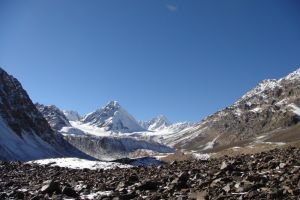 Vi indledte straks efter ankomsten en 12 timer lang og utrolig smuk køretur sydom den store sø Issyk Kul og videre op i Tian Shan bjergene mod grænsen til Kina. Efter at have passeret et pas i 4200 meters højde, begyndte mørket at falde på og vejen vi fulgte de sidste timer frem til vores basecamp, bestod til sidst blot af et enkelt hjulspor, der løb gennem vandløb, op ad stejle bjergskråninger og i løse sten. Takket være firehjulstrækket på Toyotaen, vores erfarende PH som også var chauffør og vores evne til at holde godt fast, kom vi helskindet frem til basecampen ved 21 tiden i 3000 meters højde.