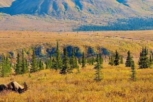 Jeg tænkte, hvad skal vi gøre? Man kan da ikke jage i sne som går helt op til taljen. Endelig kunne jeg se en flod og søer med kun en smule sne. Vi landede ved en sø. Fast hilse outfitters i ”basecamp”. Efterfølgende blev vi fløjet med et endnu mindre fly ud til ”Spike Camp”, hvor vi modtog vejledninger, og efter et par timer ankom en anden jagt kammerat. Den næste dag tog vi en hurtig turbåd op af floden. Området var der ikke blev jaget i, i 4 år.