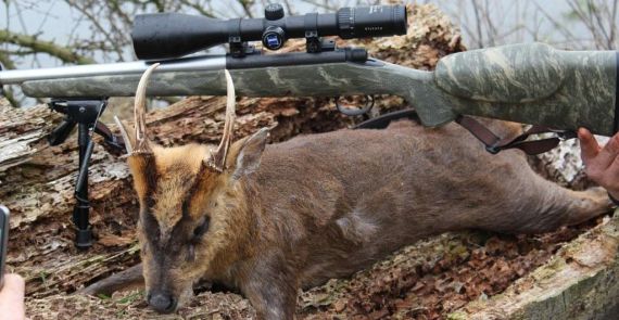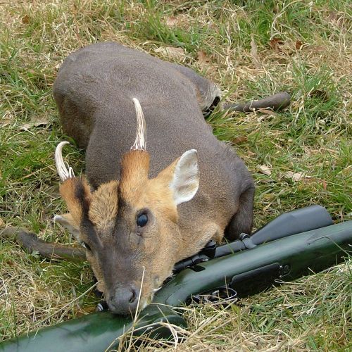 Det kinesiske vandrådyr er mindre end vort hjemlige råvildt. Store sorte øjne, tyk blød pels og hannernes manglende horn giver de små hjortedyr et meget feminint udseende. I hvert fald på afstand… Det kinesiske vandrådyr besidder et sæt lange hugtænder som får trofæerne til at fremstå som noget fra en helt anden – og meget mørkere – verden. Et vandrådyr er et must i enhver trofæsamling – vi har et nyt toprevir, hvor der også er masser af muntjacs!