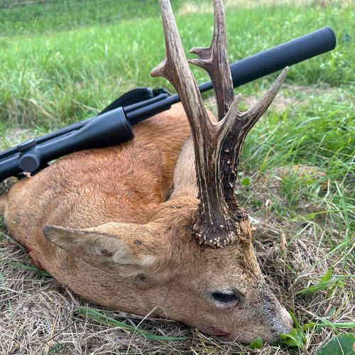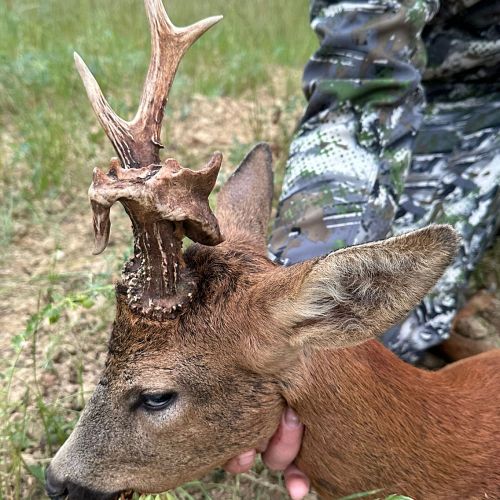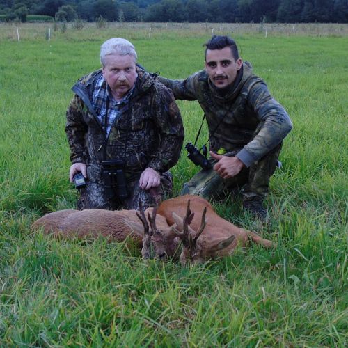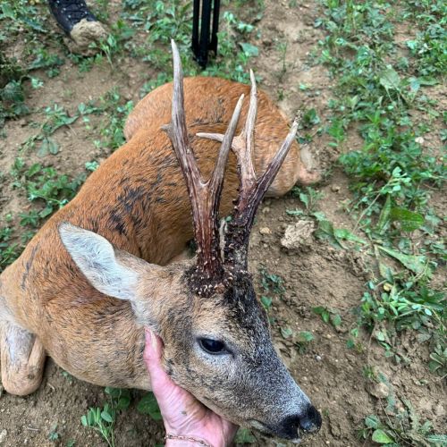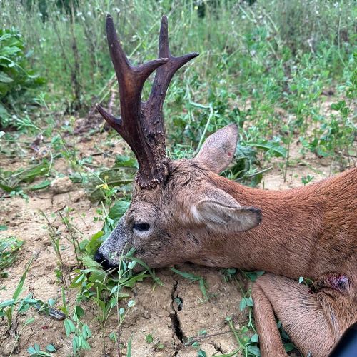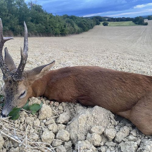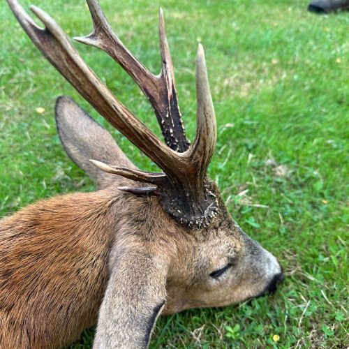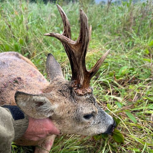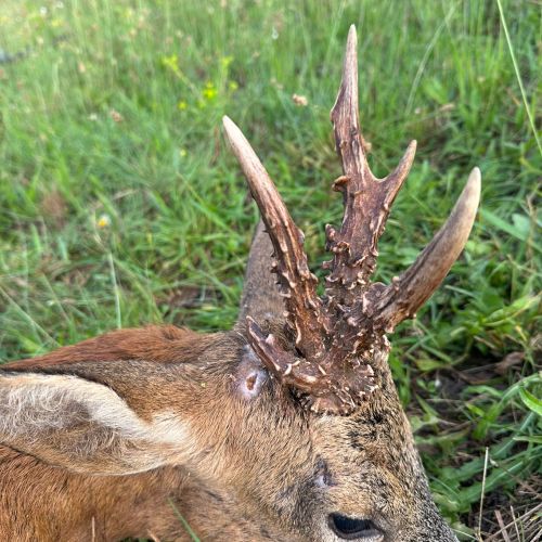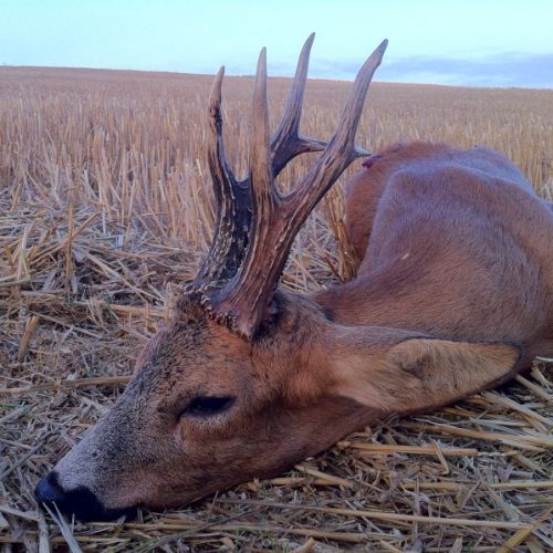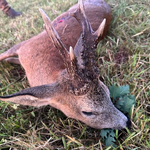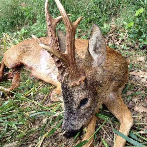 Vi hadde en flott tur til Frankrike i weekenden. Været var spesielt pent, med opp mot 30gr på eftermiddagen. Litt varmt for en noe overvektig nordmann. Jeg regnet med at det kunne bli litt svært å finne noen pene bukker så sent i sesongen. Jaktområdene var også minsket kraftig inn. Men med god hjelp av en god jaktfører; Christopher fikk jeg skyte 4 bukker, hvorav den ene var en riktig god bukk.