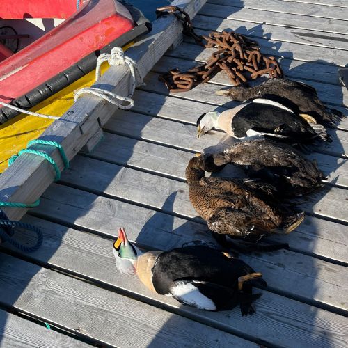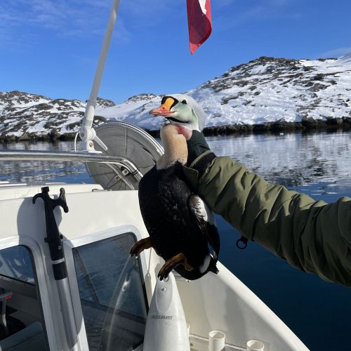 Det er med stor glæde at vi nu kan tilbyde en unik kombinationsjagt nær Nuuk, hvor der er mulighed for at nedlægge kongeedderfugl, almindelig edderfugl, snehare, fjeldrype, polarræv, sæl og rensdyr. Vind og vejr er afgørende for hvad der kan jages i løbet af de 3 jagtdage, så vi kan ikke garantere at man kan nå jagten på alle 7 arter.