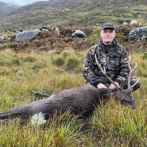 Vores partner i Irland råder over ca. 20.000 hektar jagtareal i Co. Kerry, med en rigtig god bestand af sikavildt. I de højere liggende områder er der også en god bestand af vildgeder, så hvis det ønskes, kan man kombinere jagten på sika med jagt på vildged.
