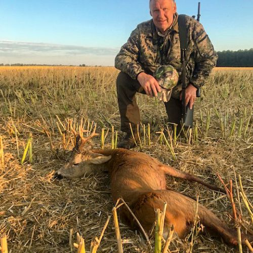 Jagten startede d. 11 maj om morgen og der startede så vores jagt succes endnu engang. vi så masser af vildt, i form af vildsvin, kronvildt, fugle, dåvildt og ikke mindst råvildt. Vores første morgen blev til en keiler og 5 bukke, så var stillen ligesom lagt. De resterende jagtdage havde vi fantastik vejr, op til 25 grader og skyfri himmel. Fantastiske frodige områder med masser af vildt og ikke mindst fuglevildt. Vi har set både sorte og hvide storke :-) i masse vis….og vi så også masser af bukke, som blev selekteret på en meget prof mode.