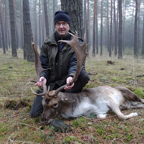 Vi er netop vendt hjem fra brunstjagten på dåhjort på vores polske stamrevir - statsreviret Dabrowa. Jeg nedlagde den største dåhjort, der nogensinde er nedlagt på reviret – på 3,45 kg – og Flemming nedlagde 2 fine dåhjorte på omkring 2,30 kg – for hans vedkommende dåhjort nr. 21 og 22 fra Dabrowa! Og selvfølgelig vender vi begge tilbage igen næste år.