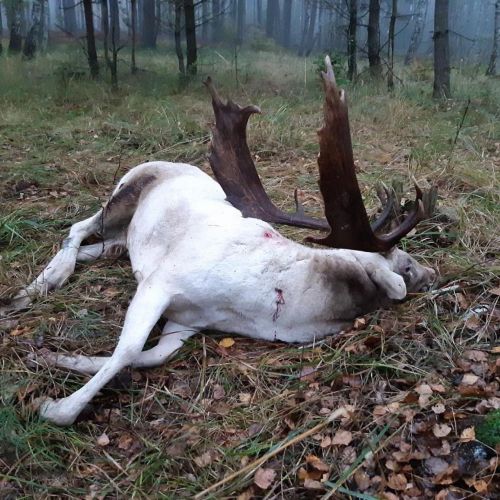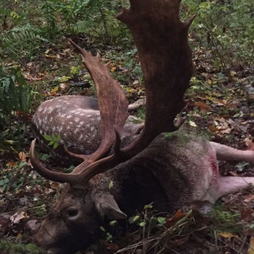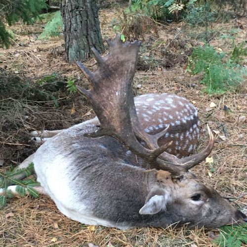 Dåen gav et set og vaklede kraftigt, hvorefter den først tog 2 skridt tilbage, så 2 skridt frem, og fald lige på skudstedet. Skuddet sad lidt lavt, for min smag, men det er vist sådan det skal sidde ifølge jagtfrokstteoretikerne, nemlig lige midt i hjertet.