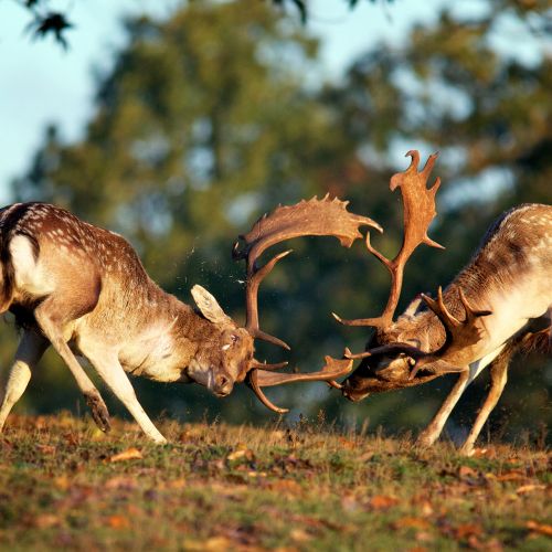 Brunstjagten på de gryntende dåhjorte er lige så intens og spændende som kronhjortejagten, og den udøves på samme måde som en kombination mellem anstand og pürsch. Selvom dåhjorten er væsentligt mindre end kronhjorten, så er det ikke noget, den lader sig mærke med! Dybe brunstgrynt og vilde kampe mellem pladshjortene kendetegner det farverige brunstsceneri.