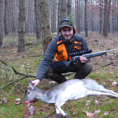 Gamekeeperen spørger om jeg vil skyde den, selv om den er skadet (har kun en stang) og ja selvfølgelig vil jeg det. Hjorten kommer nærmere på grund af den 10 ender der står 20-30 meter fra os og brøler. Da han træder ud af tågen lader jeg skuddet gå, hjorten springer og løber 10-20 meter og vælter død om. Alt dette er min svigerfar vidne til på hans første pürch en oplevelse både for mig, men også ham. Hjorten vejede 5,3 kg – utroligt med kun 1 stang! Om aftenen skød jeg en ræv. Hvis svigerfar havde været lidt yngre, er jeg sikker på han havde taget jagttegn efter denne tur. Vi har haft store natur oplevelser på turen og set rigtig meget vildt. God jagt, godt ophold, god forplejning.