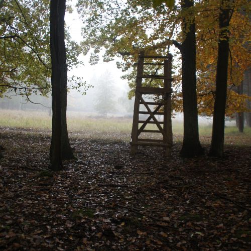 Samme aften forsatte jagten ind på skovens konge. Denne gang var jagtformen noget anerledes, idet vi satte os i en hochstand og ventede på, at hjortene skulle vise sig. En hjort dukkede op bagved hochstanden, men opdagede os inden skudchancen bød sig.