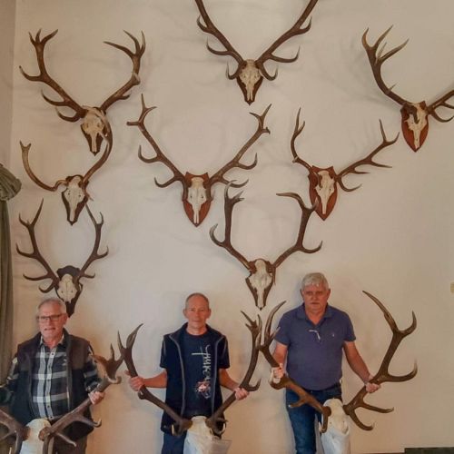 Vi hørte godt med brøl og brunstaktivitet, men i år havde det været noget tid før, og der havde været noget mere gang i brølene ugen forinden, men vi hørte masser af brøl og så en del flotte hjorte. Jeg skød en rigtig flot hjort på 4,5 kg. U-12ender som vi gik efter to aftener, hvor jeg skød den den anden aften. Den så lidt større ud, da den gik derude, og vi havde vurderet den til mellem 5 og 5,5 kg. men det er en rigtig flot Hjort og det var en rigtig god jagt, så det var perfekt. Min far skød en rigtig flot stærk Hjort den sidste morgen også en u-12ender men noget større og tykkere i stængerne 6,3 kg. og den havde han også haft en rigtig god jagt på, og det var en gammel Hjort, så det var også rigtig godt.