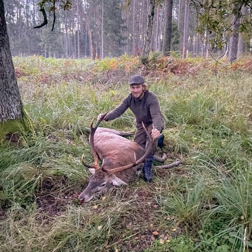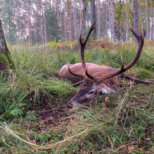 Der er en god bestand af kronvildt på reviret. Trofæstørrelsen er under middel, men brunstjagten er nøjagtig ligeså spændende og intens som ved de større hjorte. Smuk natur i kuperet landskab (dele af reviret). Læs mere om kronhjortejagt i Polen