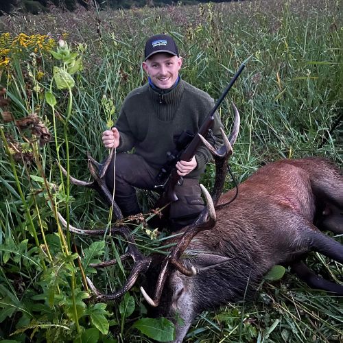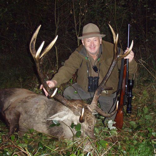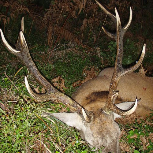 Næste morgen kørte guiden og jeg (jæger) ud til samme sted som vi var aften før, for at se om der ville være hjorte igen og der gik heller ikke langtid før vi hørte dem. Vi gik efter lyden og kunne blive ved med at hører dem, men kunne ikke rigtig se dem da det stadig var halvt mørkt. Vi kom længere ned men kunne stadig ikke se noget og vi blev enige om at de måtte være inde i skoven, så jeg blev enig med min guide om at jeg selv fik lov til at pürch på dem inden i skoven. Jeg gik og på et tidspunkt måtte jeg ned at kravle for at komme igennem noget krat. Jeg var omkring 200 meter inde i skoven da jeg fik øje på en hjort og den stod kun 22 meter fra mig, men den stod med siden til og jeg kunne kun se dens ene stang. Jeg ventede lidt og pludselig stak den hoved og blad frem, og jeg fandt den i min riffelkikkeret og skød et skud på den og den gik ned i første skud! Det var min første hjort og den var 11 år gammel og vejede 6,5 kg.