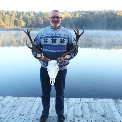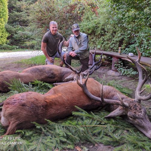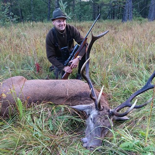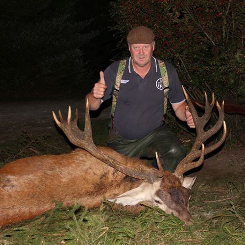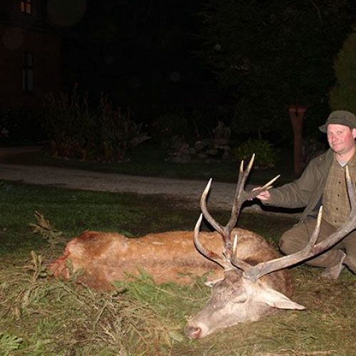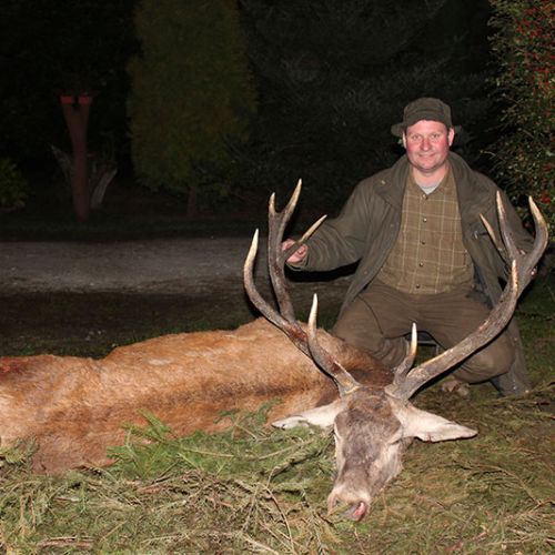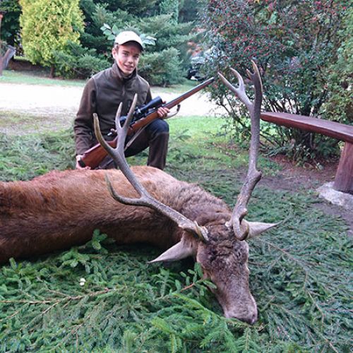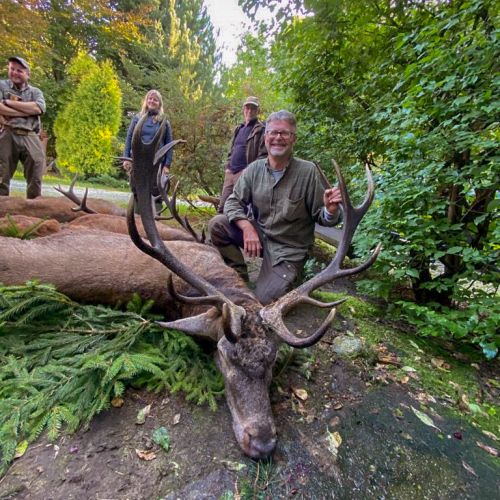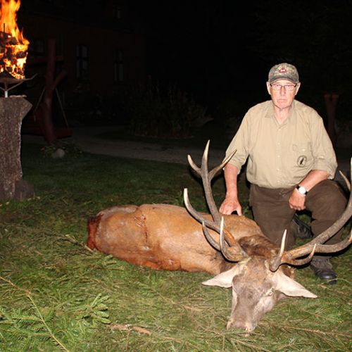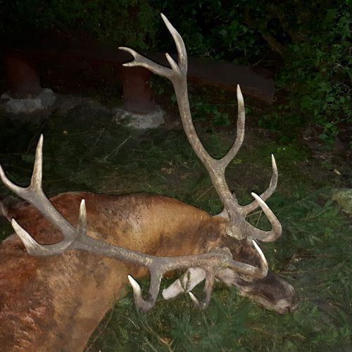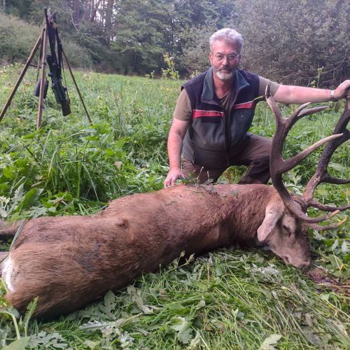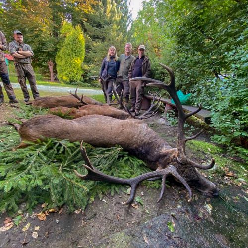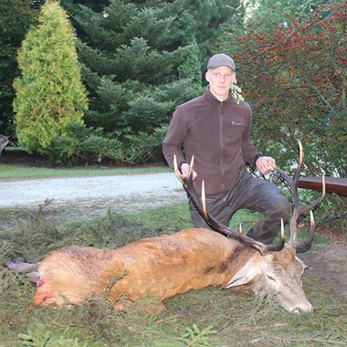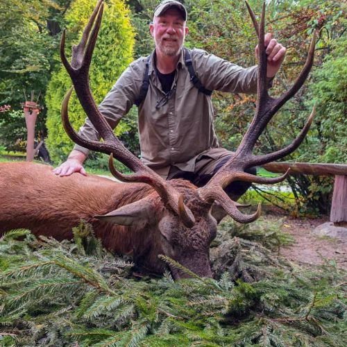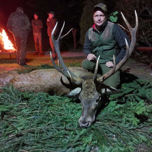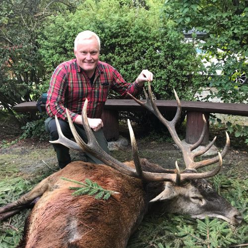 ” Vi havde en super tur – min far og jeg ankom på reviret midt i brunsten og blev budt velkommen af oberfürster Adam – der var super meget vildt og vi så ræve, grævling, rådyr, dådyr og ikke mindst en masse krondyr som vores jagtguider havde 100% styr på – super værelser, mad, jagtguider og stemning – fedt at de gør så meget ud af at vise vildtet en sidste ære med jagthornsblæsning, parade, ild osv. – efter at vi hver havde skudt hjort skød jeg både ræv og råbuk så det var på alle måder en super tur - vi havde fabelagtige dage og har nu hver en flot hjort på væggen.