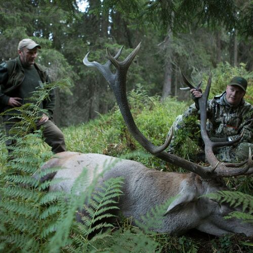 Du og din jagtfører søger de store brølende hjorte i bjergene. Ofte vil I prøve at kalde hjortene frem. Du vil opleve en enestående og hård jagt med hjortebrøl rullende gennem dalen. En intens og gribende oplevelse du aldrig glemmer. Jagten kan kombineres med jagt på brunbjørn og vildsvin.