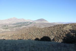 Hen under aften klarede det en smule op, og Mehmet foreslog, at vi tog tilbage til bjerget, hvor vi startede om morgenen. Inden vi nåede så langt, gjorde vi et kort ophold og spottede en bjegside, hvor en gruppe hundyr (Ibex) opholdt sig - ca 500 m fra os. Mehmet oplyste, at han tidligere havde set et god Bezoar-buk på stedet, men han var tilsyneladende ikke at se. Netop som vi ville fortsætte turen, så jeg "min" Bezoar stå på bjergtoppen, som en anden konge og spejde ned mod dalen, hvor vi stod. Det var dog nok hundyrene han var interesseret i - trods afstanden mellem dem var ca 1 km. Vi kunne straks konstatere, at det var en skudbar buk, så nu var det bare at håbe.
