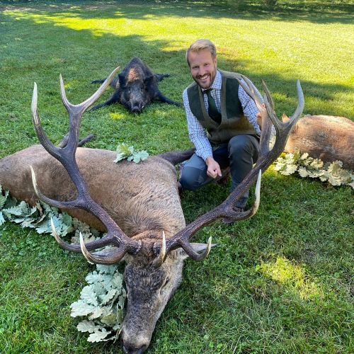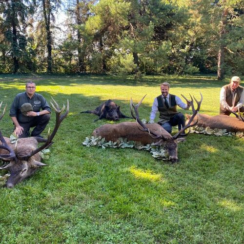 Høj succesrate! Virkeligt kapitale trofæer. Her er der nedlagt hjorte på over 16 kg. Gennemsnitsvægten på brunsthjorte på disse revirer er normalt over 10 kg. Vores revirer i det sydlige Ungarn er det bedste område, hvis du går målrettet efter den største!