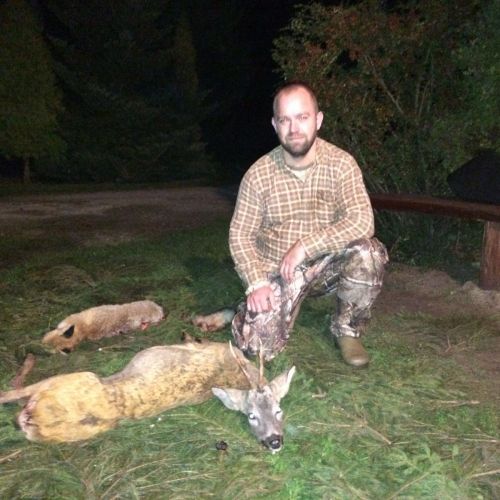 ” Vi havde en super tur – min far og jeg ankom på reviret midt i brunsten og blev budt velkommen af oberfürster Adam – der var super meget vildt og vi så ræve, grævling, rådyr, dådyr og ikke mindst en masse krondyr som vores jagtguider havde 100% styr på – super værelser, mad, jagtguider og stemning – fedt at de gør så meget ud af at vise vildtet en sidste ære med jagthornsblæsning, parade, ild osv. – efter at vi hver havde skudt hjort skød jeg både ræv og råbuk så det var på alle måder en super tur - vi havde fabelagtige dage og har nu hver en flot hjort på væggen.