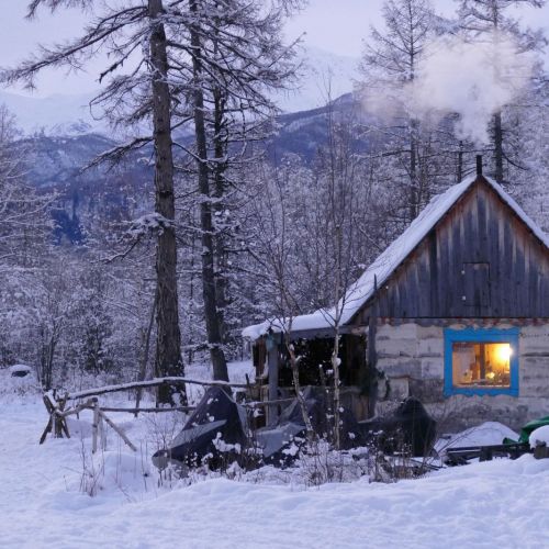 Lejren bestod af en håndfuld små bjælkehytter spredt ud i landskabet i bunden af en dal med skov på hver side. Tynde blå røgsøjler afslørede, at hytterne blev opvarmede af små brændeovne og der lugtede behageligt af brænderøg i den frostklare luft. Et væld af jagthunde i alskens farver og størrelser trissede omkring i lejren og tog sig af og til en rask løbetur efter de løsgående heste, som kom og gik som de ville. Vejrbidte elghorn, rovvildtfælder og stivfrosne egern og sneharer hang rundt omkring på husene. Et par hundrede meter fra lejren lå en lille lavvandet flod, som endnu ikke var tilfrosset og i horisonten tårnede nogle af halvøens mange aktive vulkaner sig mod himlen. Vi befandt os midt i vildmarken...man kan ikke komme meget længere ud.