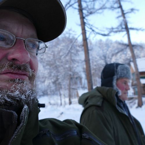Der gik ikke længe, inden der kom flere folk til pladsen. Vore guider kom kørende i store firehjulstrækkere med snescootere, slæder og proviant på trailerne. Folk fra landsbyen nogle kilometer fra floden dukkede også op. Mest for at se på og komme med gode råd.
