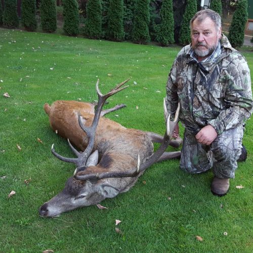 Vi havde en rigtig god tur til Maniszewo. Det var varmt dernede, og det lagde nok en lille dæmper på hjortenes brøl. Men vi så en del hjorte og fik begge en 12 ender med krone. Og vi så vildsvin, selvom det var svære betingelser med mange majs marker.
