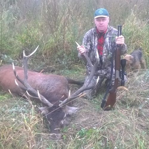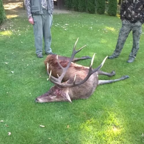 Det var tiende gang vi var på Maniszewo og nu gjaldt det brunsthjort. Trods en lidt svag brunst om aftenen på grund af varmen lykkedes det os at skyde et par gode hjorte på henholdsvis 4,8 og 7,3 kilo. Som altid var der god forplejning og god jagtføring med rigtig pyrschjagt i højsædet ,efter hjortejagten gik vi efter vildsvin og vi skød et par mindre grise.