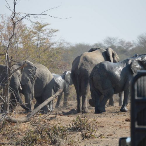 Dagen efter om morgen efter et dejligt morgen måltid blev vi kørt ud til elefanten for at se skinning og partering, trackere og medarbejdere havde forinden ryddet vejen ind så traktor, vogn og div. Biler kunne komme ind til elefanten, henad eftermiddagen kom kødet og hovedet hjem til skinner pladsen, hovedet blev gravet ned i et stort hul i jorden for at tænderne kunne blive frigjort, kødet blev fordelt til Plejehjem, Hospital, samt blev der fremstillet biltong af resten, de næste 3 dage var vi bl.a en dag i Hwange Nationalpark. De næste dage kørte vi rundt på jagtområdet og spottede de forskellige dyr, vi så bl.a Vilde hunde som var en stor oplevelse.