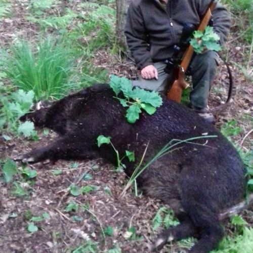Jakt nr 3(kveldsjakt) Denne jakten såg Niels og Preben ingen bukker di kunne skyte, mens Rune heilt på slutten såg et Villsvin som han skaut. dette villsvinet var skutt godt og sprang ca 150 meter før det la seg ned, men siden det var begynnt å bli skikkelig mørkt + att det var skutt på ett jorde med bare mørk sand kunne de ikke finne blodsporet og hund måtte tilkallest. det var en ganske så opgitt/sur Rune som kom tilbake på gården etter dette, di skulle ut med hunden etter vi hadde kommet tilbake. så når neste morgen kom og vi skulle ut på jakt nr 4(morgenjakt) var humøret ikke på topp hoss Rune, men når han kom ut og Karol fortalde han att vildsvinet var funnet og att det var ett godt skudd blei det plutselig en veldig god morgen. dette vart en fin morgenjakt med godt vær og "gevinst" til alle.