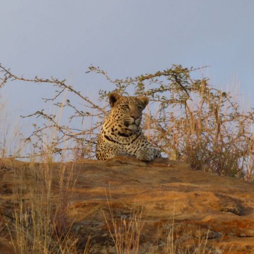 Så gikk turen videre til EHGS, her hadde vi valgt og bo på safari lodge. Liker denne lodgen best, da den er mer intim og har finere beliggenhet (min mening). Her ble de neste syv dagene benyttet til jakt og opplevelser i de flotte omgivelsene på Etosha Heights. Turen var jo ment å være på ungenes premisser, så da skulle det jo bare mangle om de ikke fikk prøve seg på jakt også. De to yngste i gruppen Ina og Taran (16 år) fikk skutt vær sin Oryx, og Even fikk sin Blue Wildebeest. Jakten var som vanlig av ypperste klasse og med flotte trofeer som resultat. Det ble også skutt Vortesvin, Red Hartebeest og Hartmans Zebra