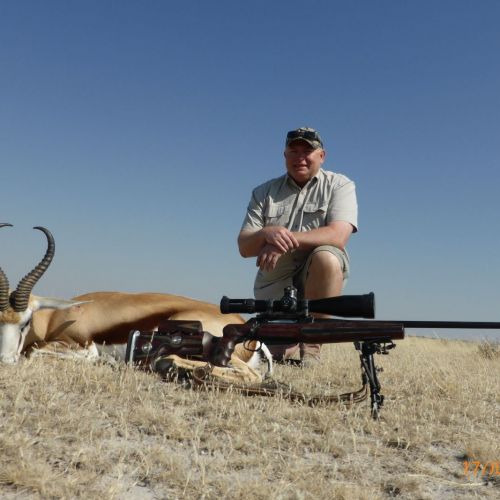 Dette er min andre jakt og ikke minst opplevelsestur til Etosha Heights Game Safaris (EHGS). Farmen ligger i det nordlige Namibia og grenser mot Etosha Nasjonalpark.  EHGS er en fantastisk og variert gamefarm med sitt over 60.000 hektar store areal, sin artsrikdom og gode trofér. Av gruppen på 6 som jeg reiste sammen med nedover, hadde tre av oss besøkt EHGS tidligere. Vi ble møtt på flyplassen i Windhoek av Gideon fra EHGS. På turen nordover tok vi oss tid til litt shopping hos Holtz i Windhoek og besøk hos Taxidermy Studio i Otjiwarongo.