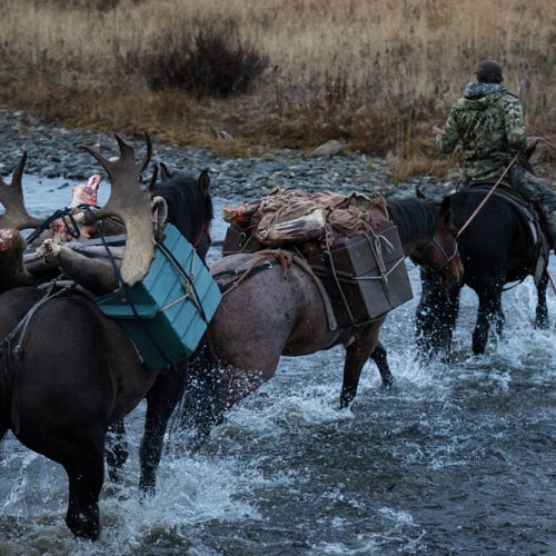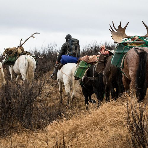 På en hesterygsjagt bruger man hestene til at komme op på nogle af højdedragene i området, hvor man kan spotte vildtet på store afstande, og man kan samtidig dække relativt store områder ved hjælp af hestene og jage rundt i området langs fyrskovene og krat/moseområder. Hvis man ønsker det, kan man man også tilføje en mountain caribou til jagten mod en trofæafgift. Denne kombination udøves med stor succes og næste 100% sucessrate. Dette jagtområde tilbyder uden tvivl British Columbias bedste kombinationsjagt på moose og mountain caribou.
