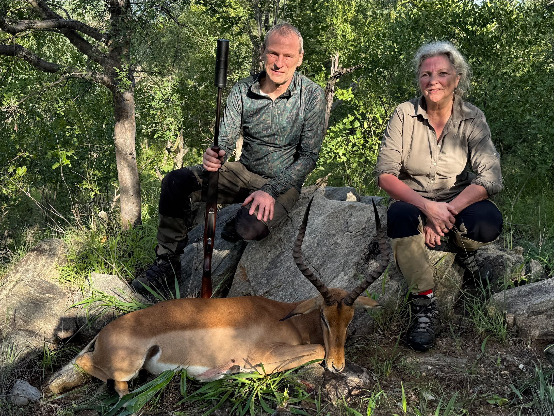 Hanne og John har netop haft en fantastisk oplevelse på Balule River Lodge i Sydafrika. Deres rejse bød på spændende safarioplevelser, fantastisk forplejning og en enkelt dags jagt, hvor målet var, at John skulle nedlægge en impala. Med stor succes lykkedes det, og han fik en flot impala. Stort tillykke!