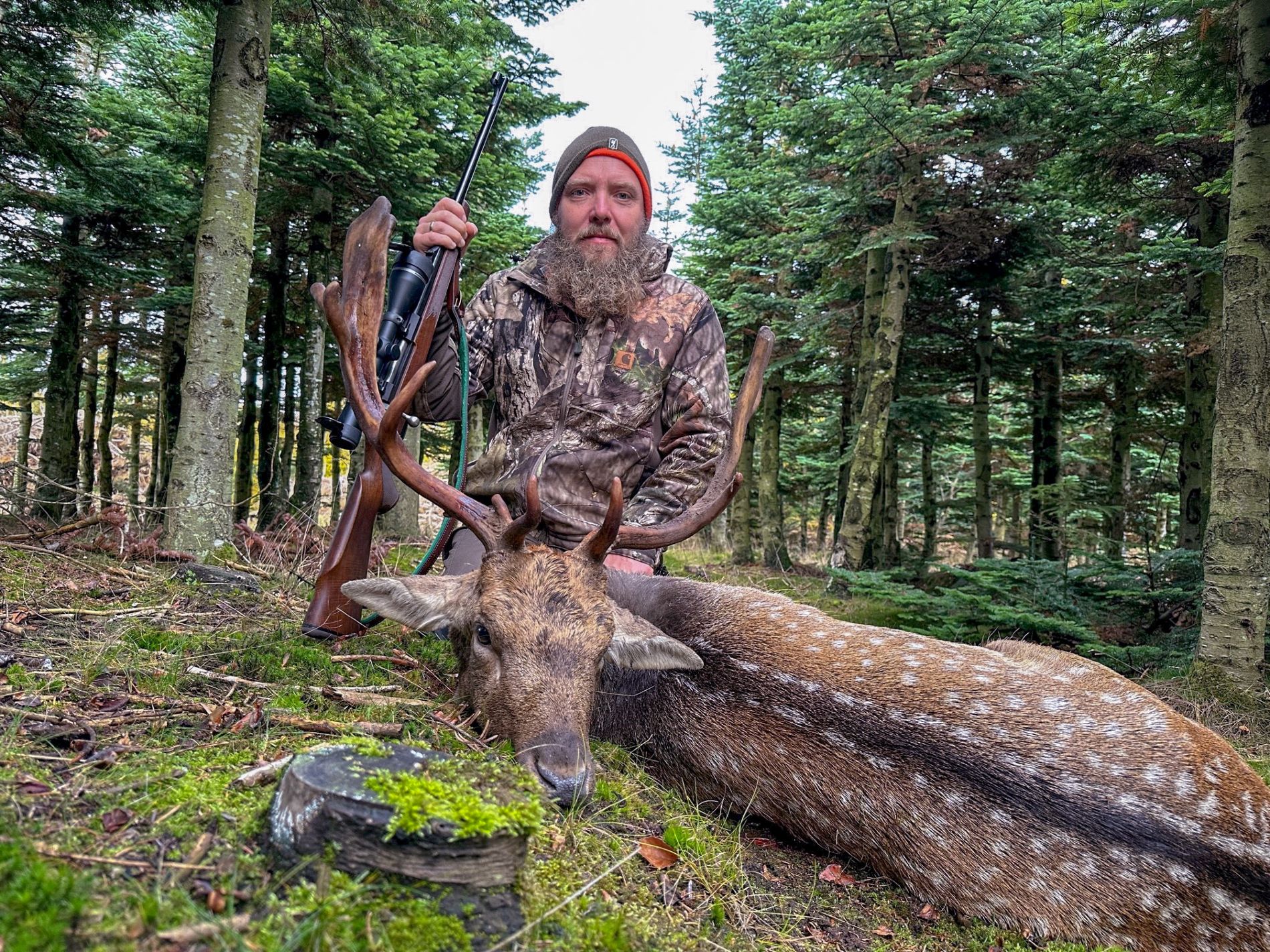 Jørgen var også hurtig og nedlagde en rigtig stærk fuldskuffel allerede efter få timers jagt den første dag. En gammel kapital hjort, som var i fuld brunst, hvilket gjorde det svært at få den til skud mellem dåer, kalve og mindre hjorte.