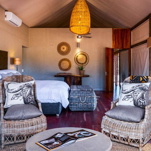 Beliggende mellem Shepard´s og Acacia træer ligger 6 private, aldeles luksuriøse teltsuiter, designet til at indfange den naturlige skønhed i det omkringliggende landskab. Deluxe bekvemmeligheder med et personligt præg fuldender gæsternes komfort og forstærker deres oplevelse.