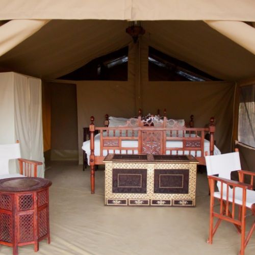 Alle camps er opbygget i typisk østafrikansk stil. De er alle smukt beliggende og er særdeles komfortable og har rummelige insektsikrede telte (dobbelte), med udmærkede senge, sengelinned, natborde, tøjstativer, hylder og stole. Der er også privat douche og toilet med rindende varmt og koldt vand til hvert telt og i alle camps er der endvidere et hyggeligt opholds/spise “telt”. En veludstyret bar med køleskab til iskolde drikkevarer hører naturligvis også med.