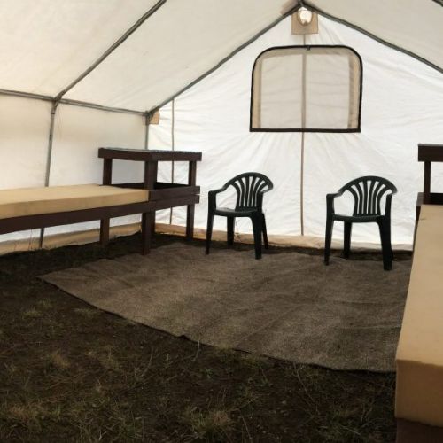 Jagtlejrene består enten af store outfitter telte, som indeholder brændeovne til opvarmning og køjer/feltsenge at sove på, eller mindre træhytter. Det er klassiske canadiske jagtlejre, som er beliggende ude i jagtområdet, langt fra civilisationen.