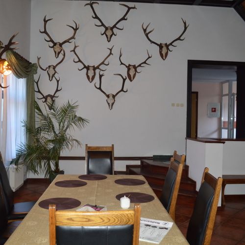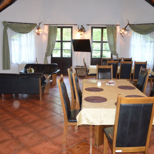 Indkvarteringen finder sted i et dejligt jagthus midt i reviret. Der er ikke tale om den store luksus, men alt er, som det bør være, og forplejningen er rigtig god. Vores gæster bor i den ene del af huset, mens jagtførsteren Marek bor i den anden del. Marek taler engelsk og sikrer, at alt forløbet glat. Gæsteafdelingen råder over en hyggelig opholds-/spisestue, 6 dobbeltværelser (2 værelser deler bad og toilet) samt 2 lejligheder, der hver omfatter 1 værelse, 1 badeværelse samt 1 lille stue. Der er køleskab til vores gæsters rådighed. Der er WiFi i huset, men kun dårlig mobildækning.