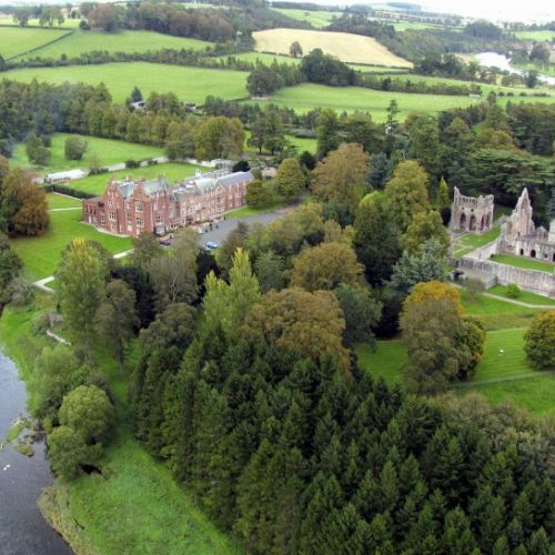 Hotellet, der ligger kun en times kørsel fra Edinburgh lufthavn, ligger utroligt smukt på bredden af floden Tweed i hjertet af Scottish Borders – grænselandet mod England i syd. Fra de fleste af værelserne og opholdsrummene er der udsigt over floden.