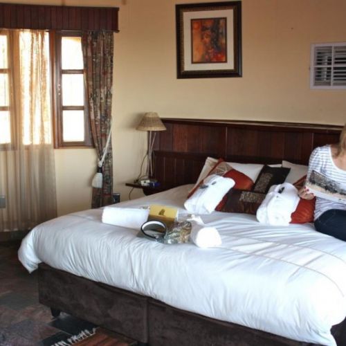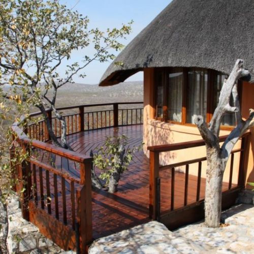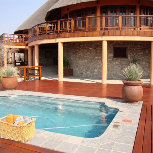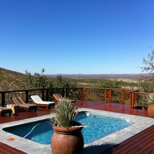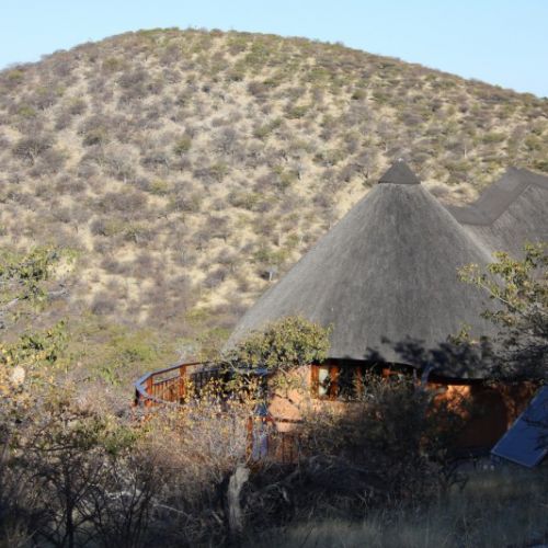 Vore jægere bliver indkvarteret på den pragtfulde Etosha Mountain Lodge. Tidligere kunne man også vælge at bo på Etosha Safari Lodge, men den er nu udelukkende en turistlodge. Etosha Mountain Lodge er bygget på toppen af et mindre bjerg med en storslået udsigt ud over det omkringliggende område. Der er 6 luksuriøse stråtækte hytter (chalets), og en suite med egen privat udsigtsterrasse. Alle værelser har tilhørende badeværelse, de er store og der er både brusebad og badekar. Herudover er der Lapa, spisestue, bar, swimming pool og vinkælder. Et ophold hos Etosha Hills Hunting er desuden en kulinarisk oplevelse ud over det sædvanlige. Du kan roligt glæde dig til det engang bliver din tur.