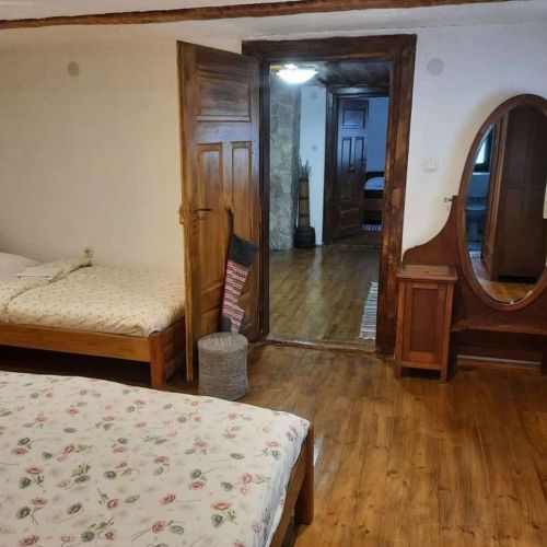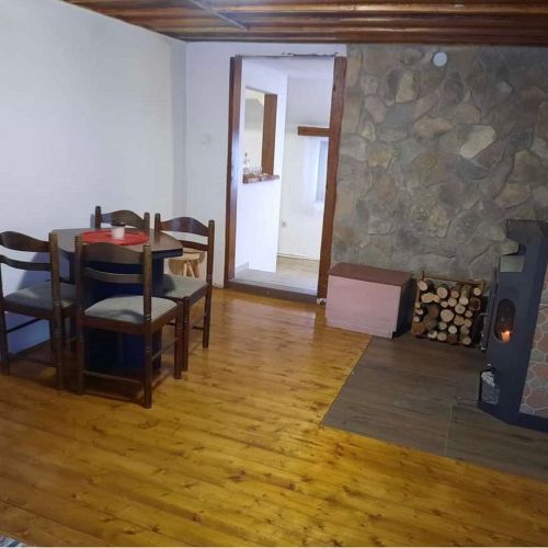 Stueetagen består af 7 sengepladser, stue, 2 toiletter, køkken, køkken alrum, sauna og pejs. Overetagen har 3 sengepladser, stue, toilet og køkken, samt separat beliggende gildesal med stort ildsted og udendørs spa.