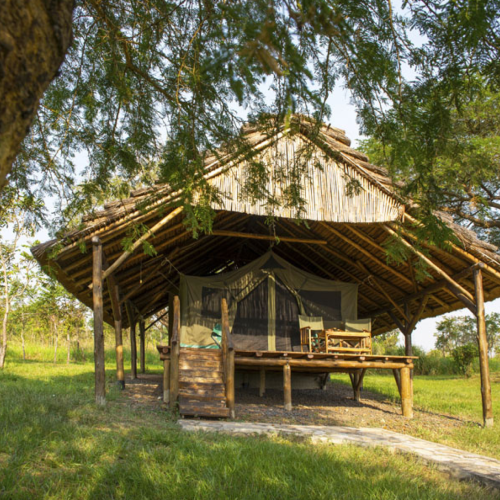 Generelt bor man godt på en safari i Uganda. De forskellige revirer kan have camps af forskellig beskaffenhed, og det samme revir kan på grund af den enorme størrelse også have en hovedcamp og en eller flere satellit camps. Indkvarteringen kan derfor både være et safaritelt, et stråtækt telt eller en bungalow. Der er privat bad og toilet til hvert telt, samt et fælles opholds ”telt”/hus, hvor måltiderne indtages og i hver camp er der naturligvis også en hyggelig bålplads, hvor man kan sidde om aftenen efter endt jagt og genopleve dagens begivenheder.