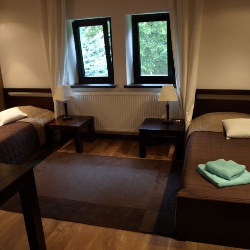 Indkvarteringen finder sted i et jagthus midt i skoven i skønne omgivelser med 2 km til nærmeste nabo. Her bor også vores jægere, der jager på Zlotoryja. Gæsteafdelingen på 1. sal rummer foruden en hyggelig opholdsstue 6 dobbeltværelse og et tre-sengsværelse. Alle værelser er med egne toilet- og badeværelser. I opholdsstuen er køleskab til rådighed. Der er adgang til aflåst garage og kølehus. Legnica´s jagtførster hedder Remigiusz Baran, og han taler lidt tysk. Der er Wi-Fi og mobildækning.