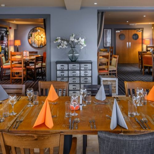 Hotellet har en god restaurant som byder på en varieret menu, tilberedt med råvarer fra lokale leverandører og et vinkort til at supplere maden. Baren tilbyder flere forskellige øl og ciders, samt et varieret udvalg af whisky og gin, som alle serveres i afslappede og hyggelige omgivelser.